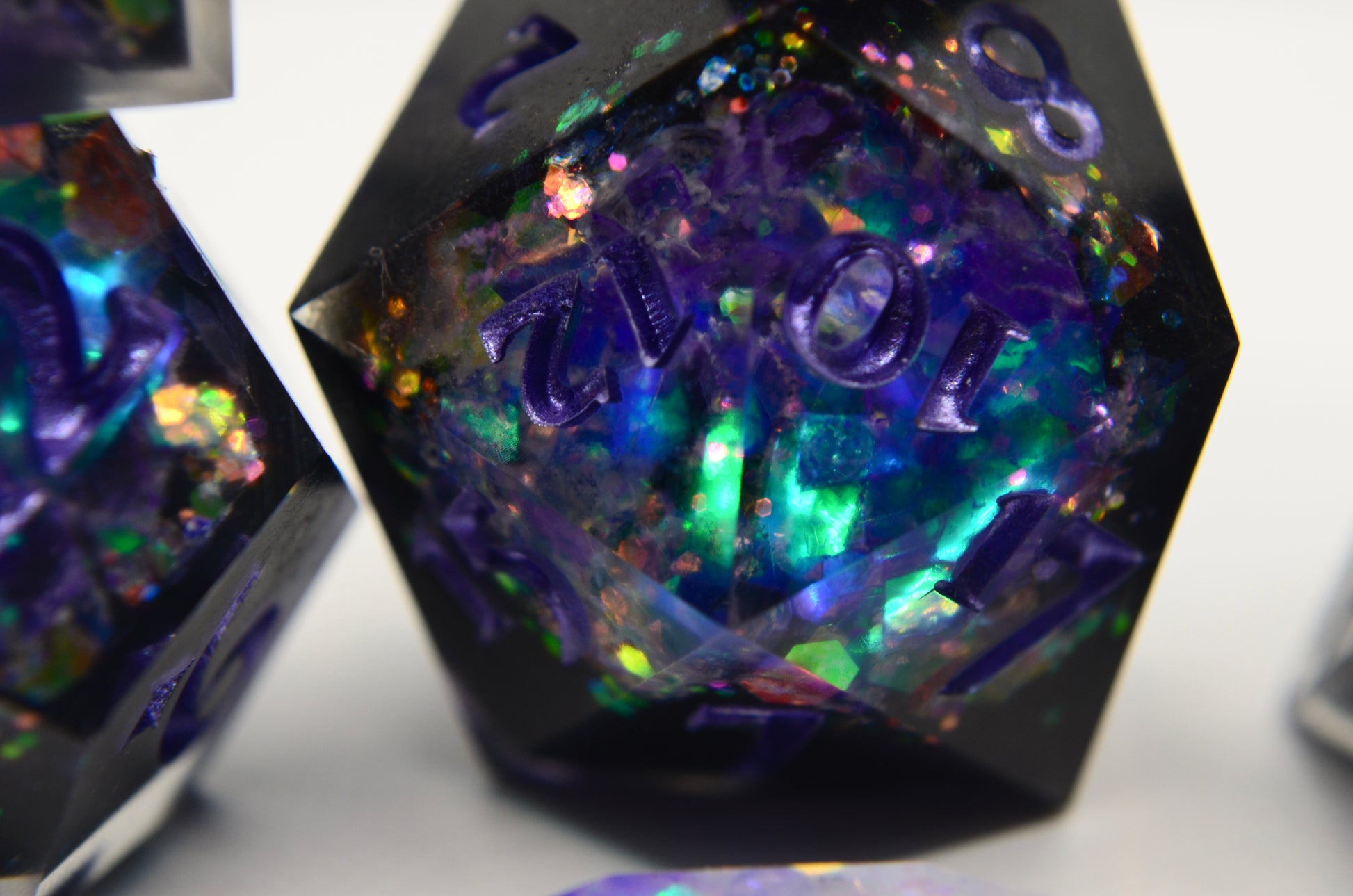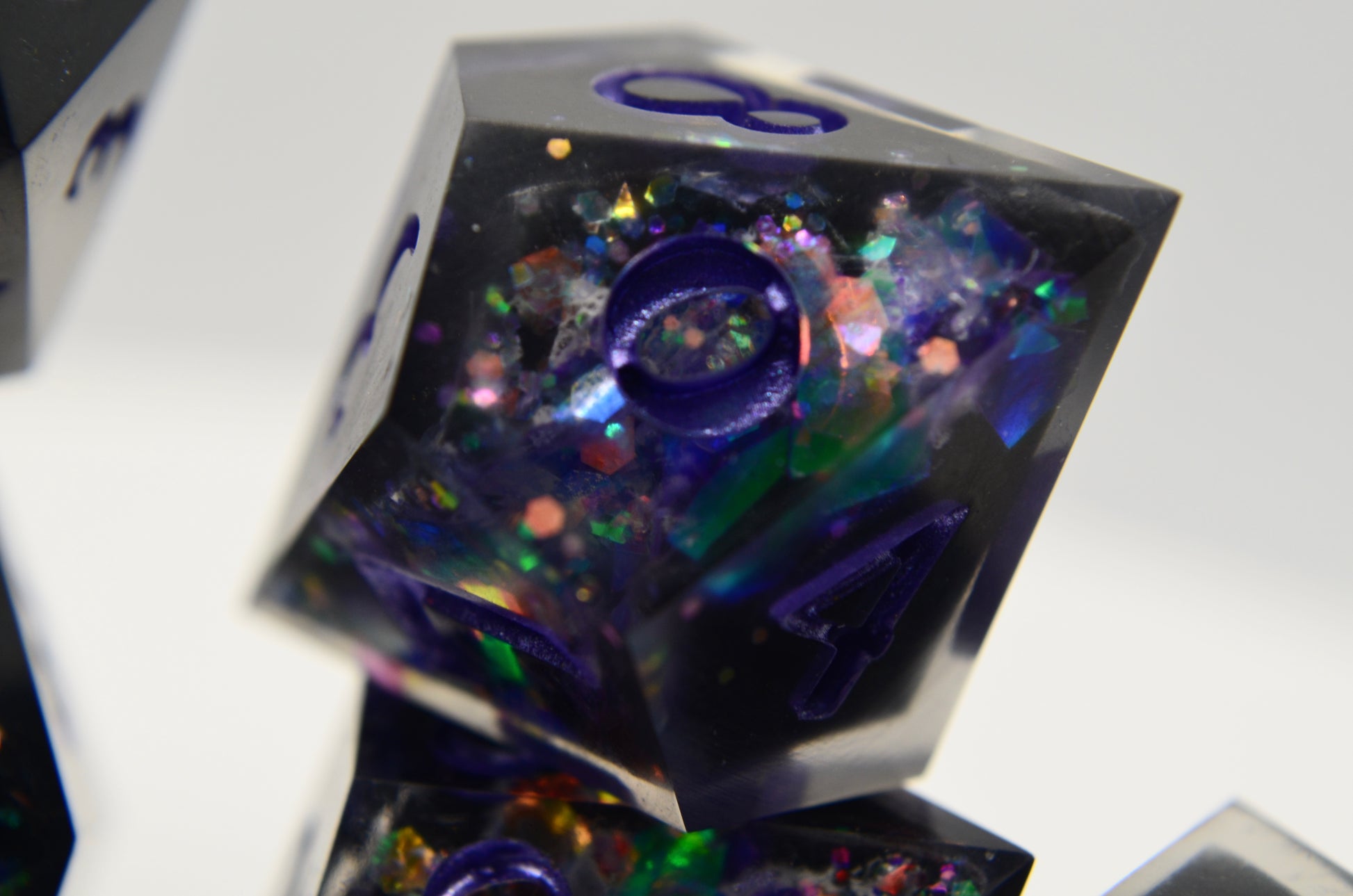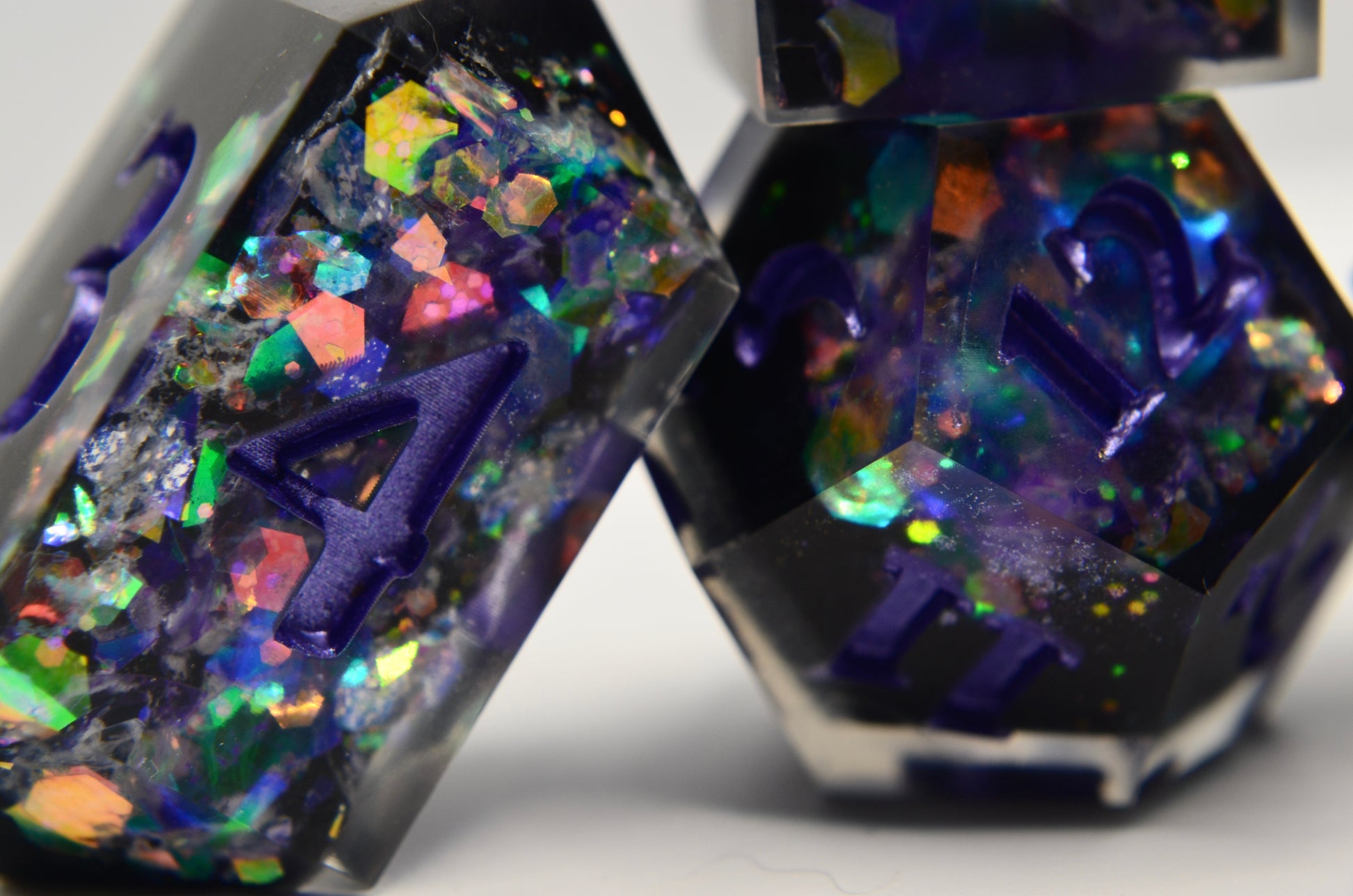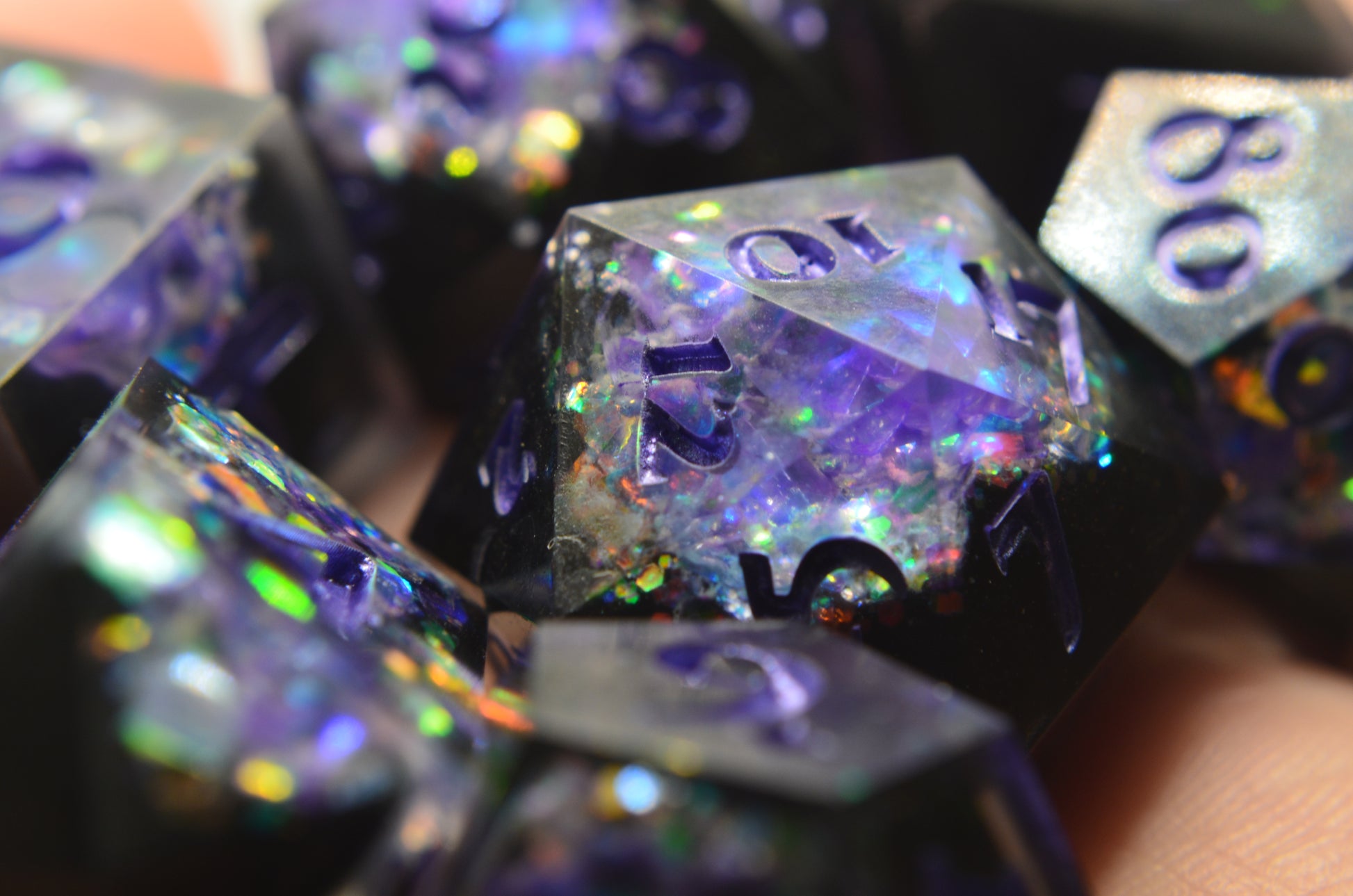 This geode style set is made with hand carved blanks and opalescent purple glitter!