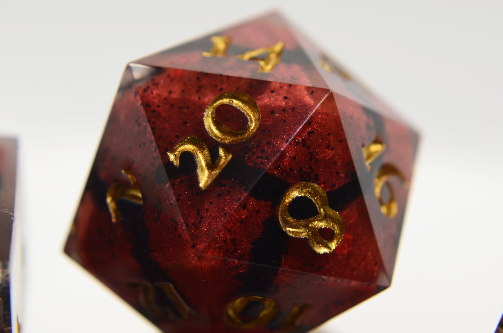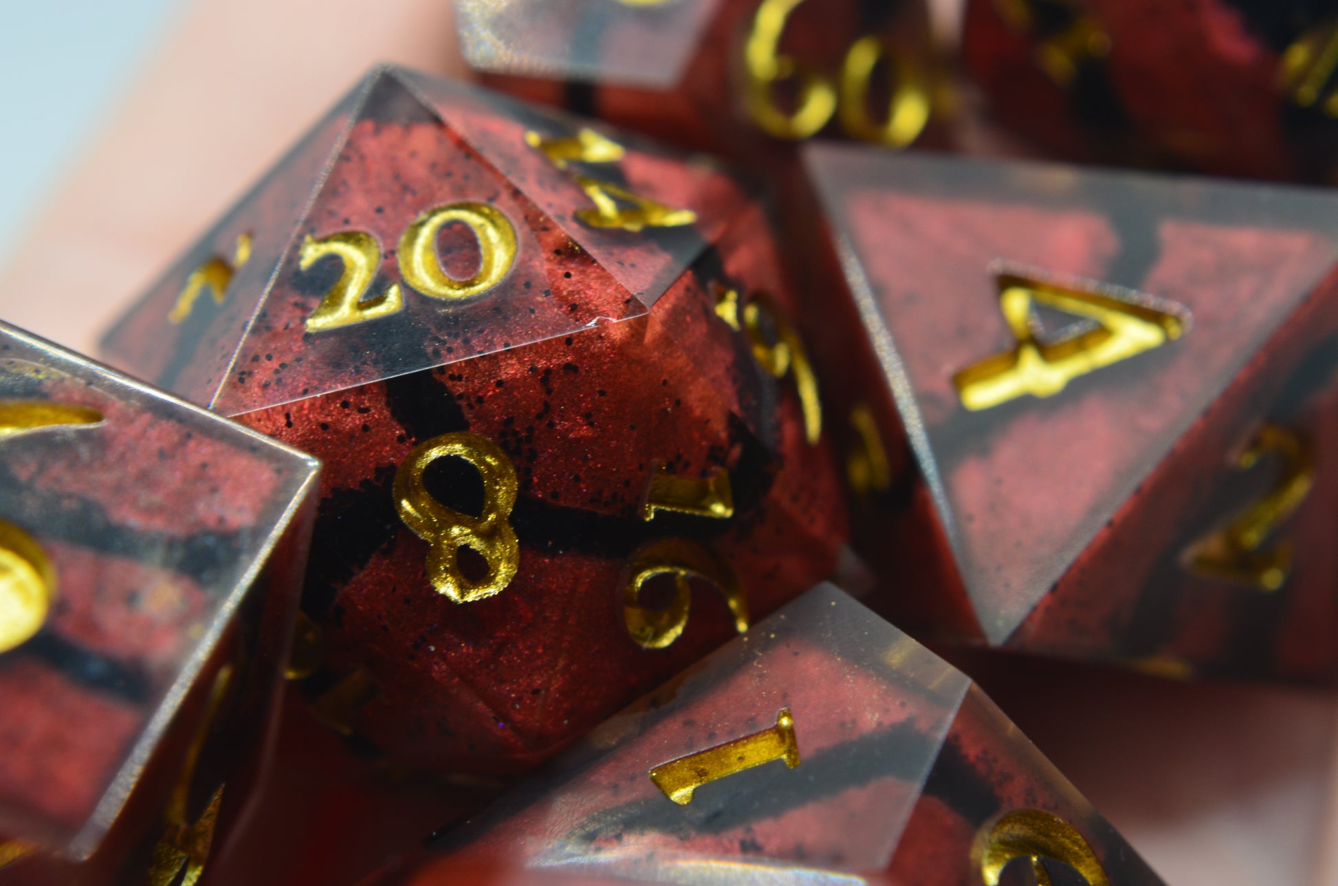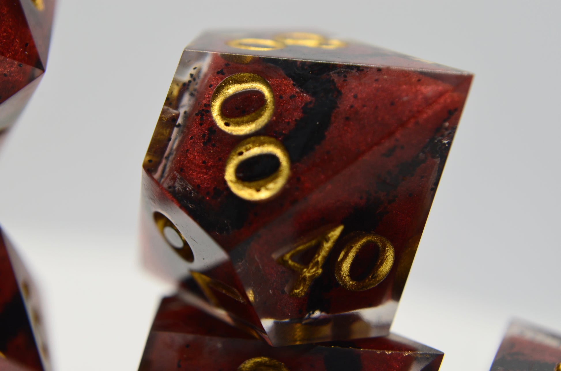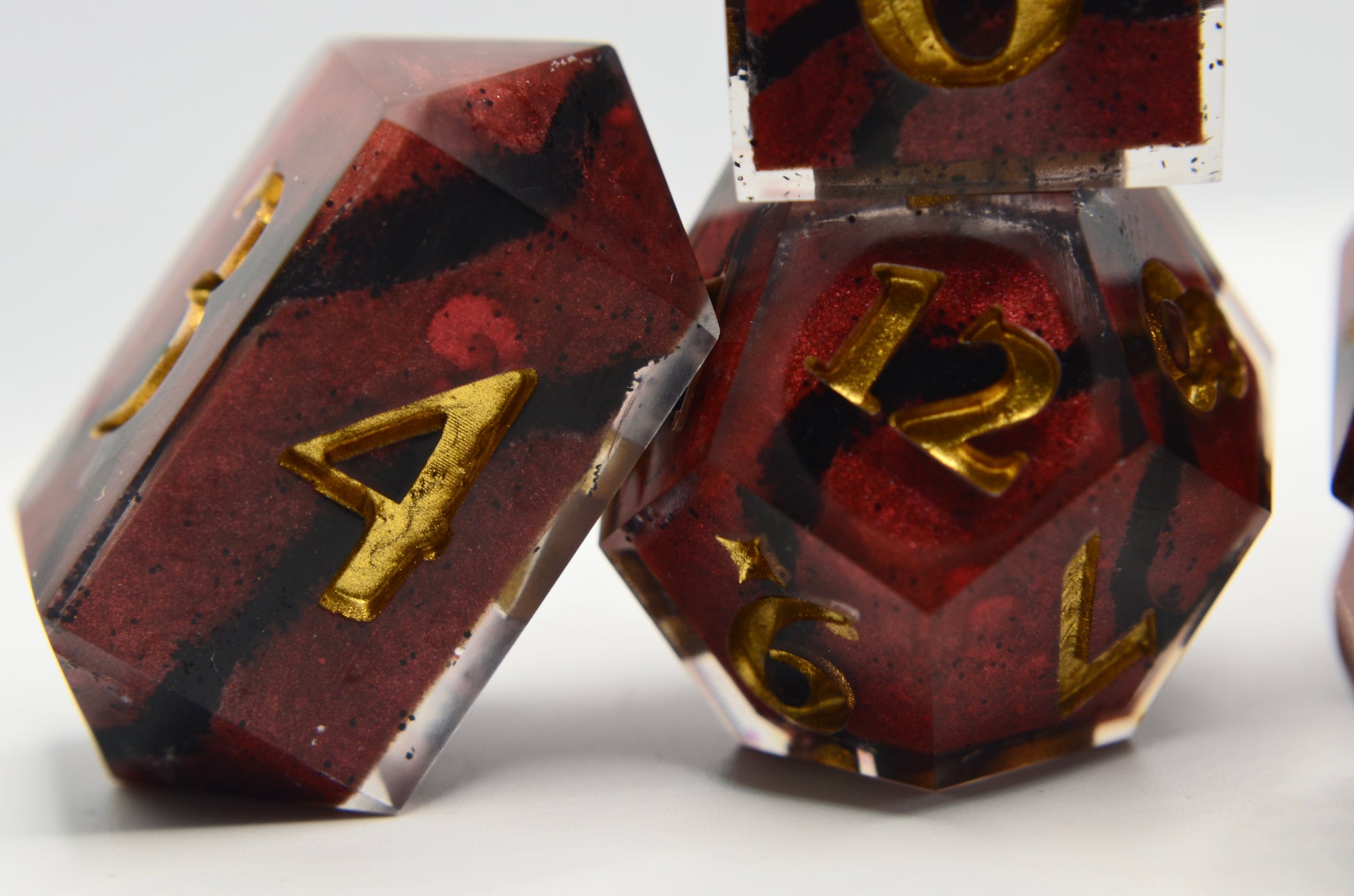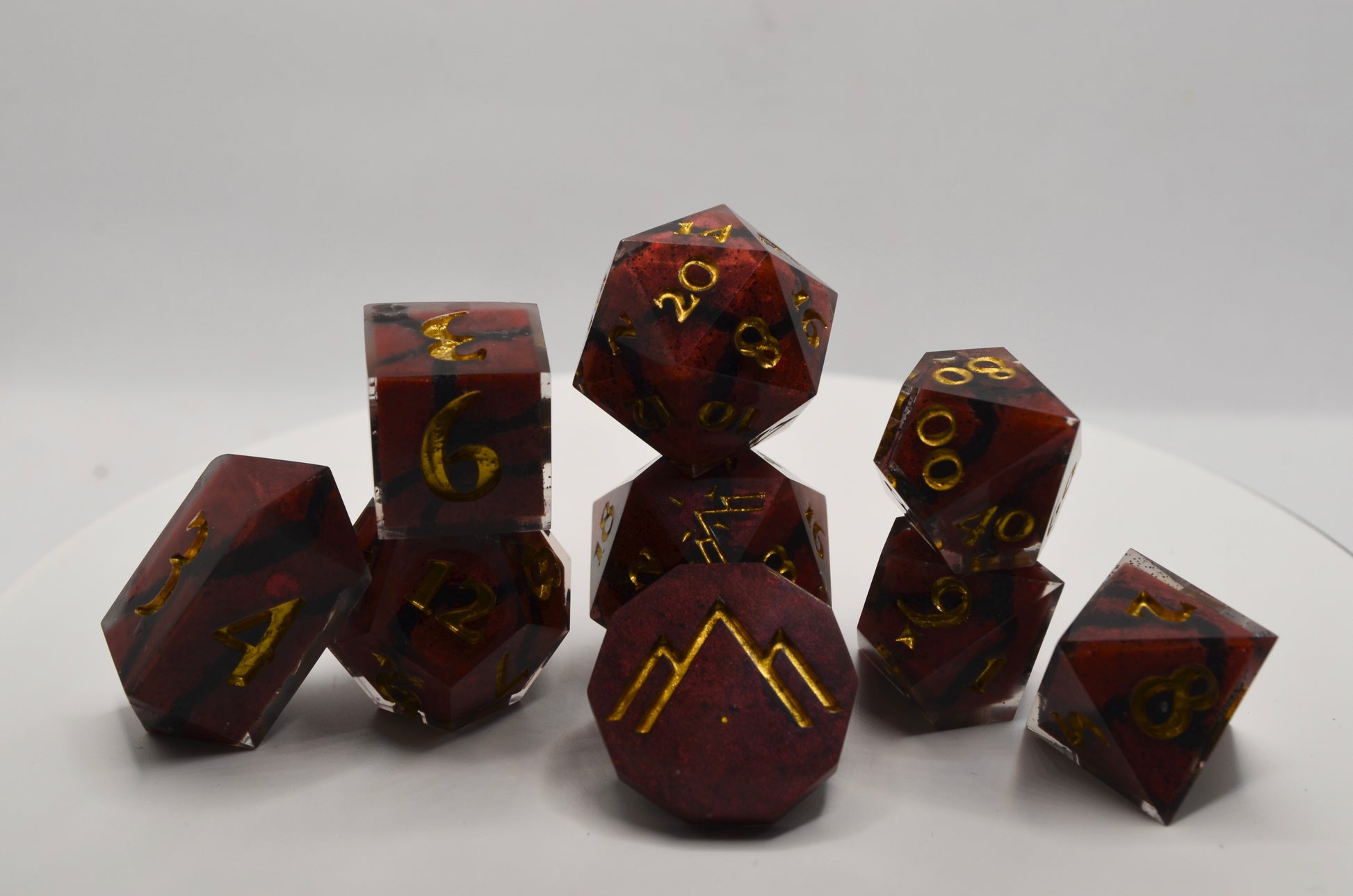 This geode style set is made with dark red hand carved blanks and black glitter “lava rivers!” The numbers are inked in metallic gold!